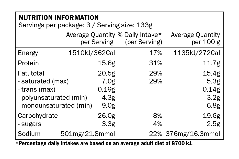 Plant based mince Beyond Meat 48.5% from E.U [water, pea protein 16%, rapeseed oil, coconut oil, rice protein, flavoring, cocoa butter, dried yeast, stabiliser (methylcellulose), potato starch, apple extract, salt, maize vinegar, concentrated lemon juice, emulsifier (lecithin, sunflower), color (beetroot red), maltodextrin, pomegranate extract], onion, wheat bulgur, vegetable mayo sauce [vegetable oils (sunflower oil, soybean oil) 56%, water, sugar, maize modified starch, salt, vinegar, artificial flavoring (smoke flavor, mustard emulsion), stabilizer (xanthan gum), color (paprika extract,b-carotene), antioxidant (calcium disodium EDTA)], water, salt, black pepper, red pepper, mint, garlic powder.