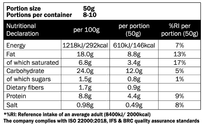The crispy filo with whole pieces of authentic Cyprus Halloumi, highlighted by the aroma of extra virgin olive oil is combined with fresh Greek herbs like the all-time favorite oregano.