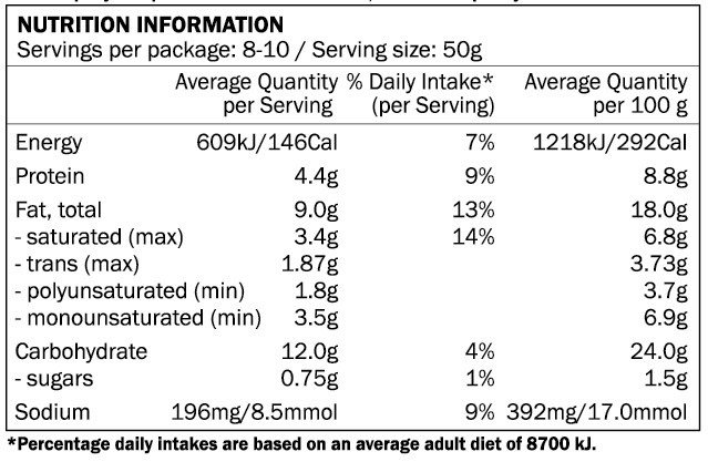 MAY CONTAIN: SESAME, TREE NUTS, PEANUTS, MUSTARD, SOY (LECITHIN).