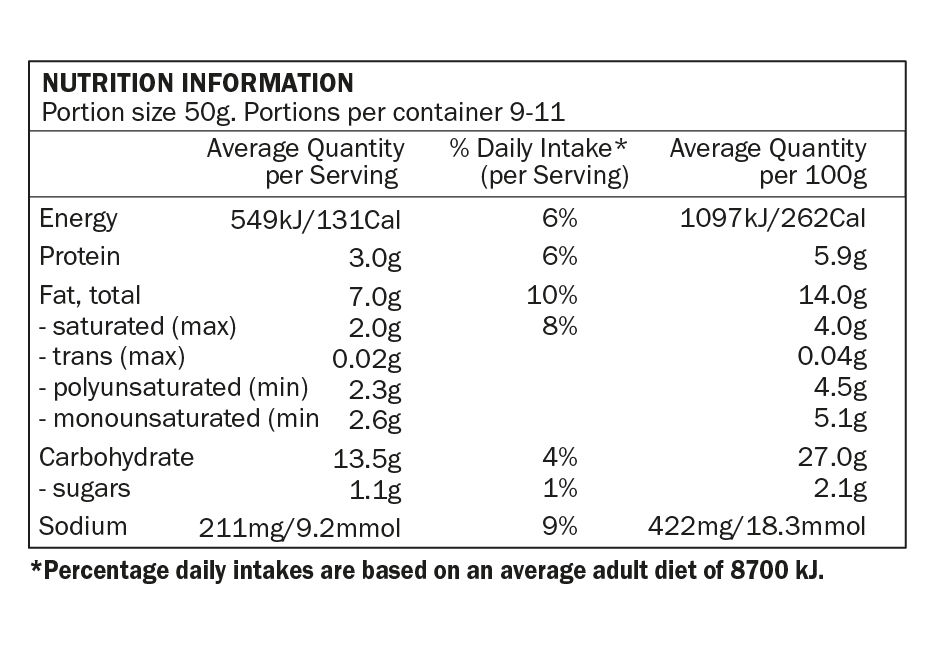 MAY CONTAIN: SESAME, TREE NUTS, PEANUTS, MUSTARD, SOY (LECITHIN).