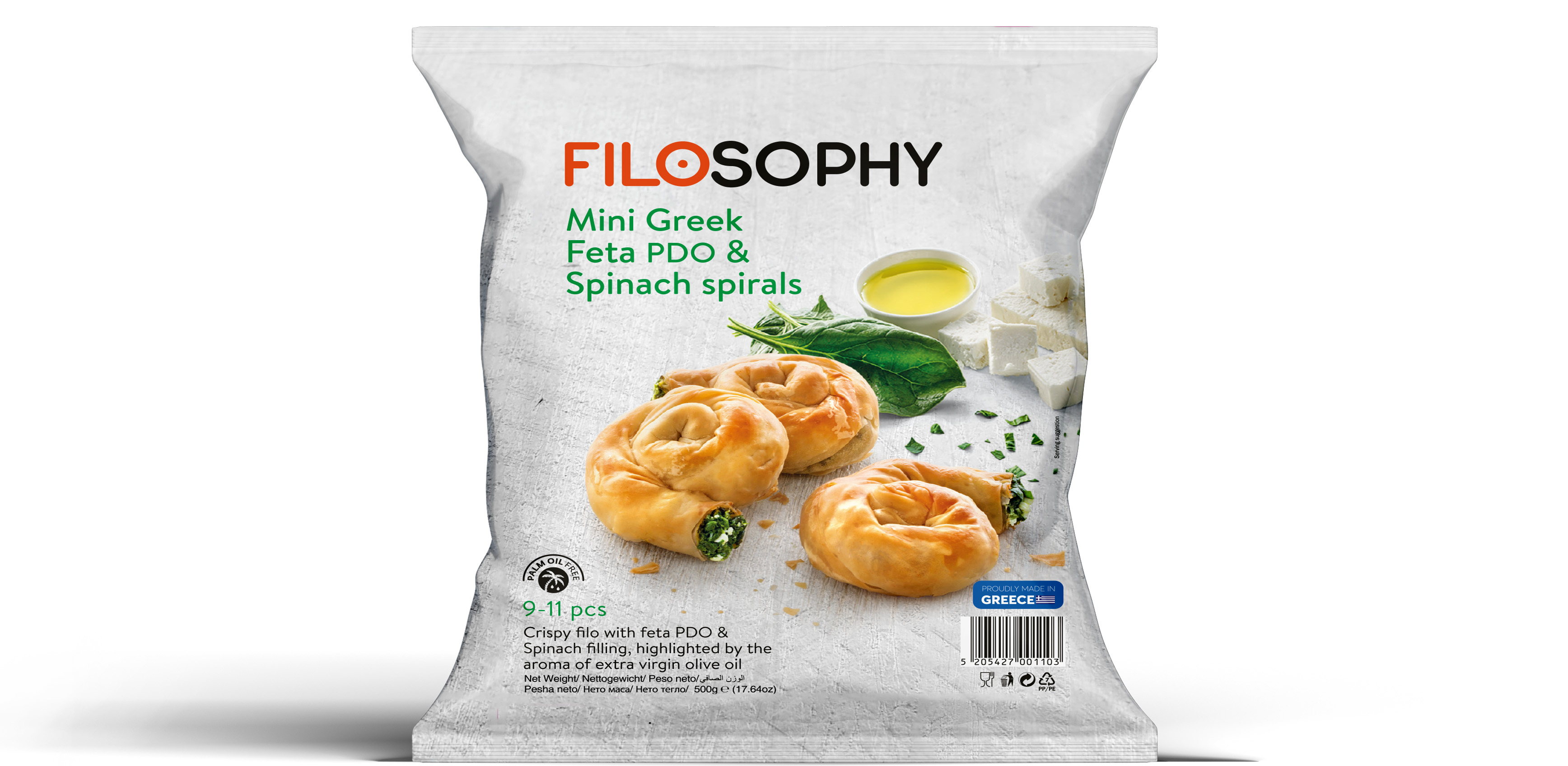 Crispy filo with feta P.D.O. & Spinach filling, highlighted by the aroma of extra virgin olive oil.